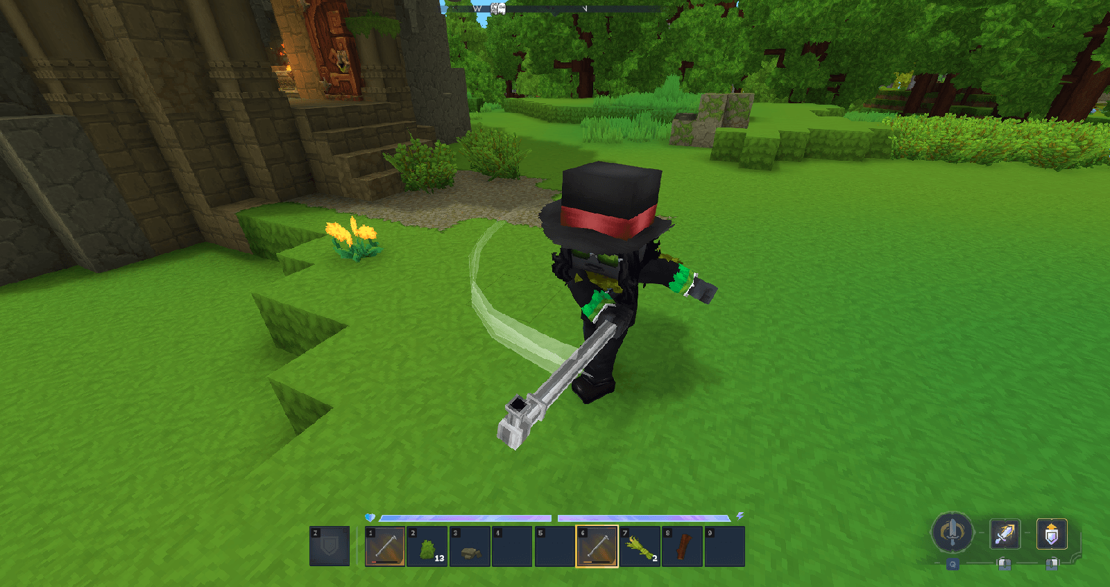 - Удержание правого клика с трубкой активирует шквал мощных 1-хитовых комбинированных атак