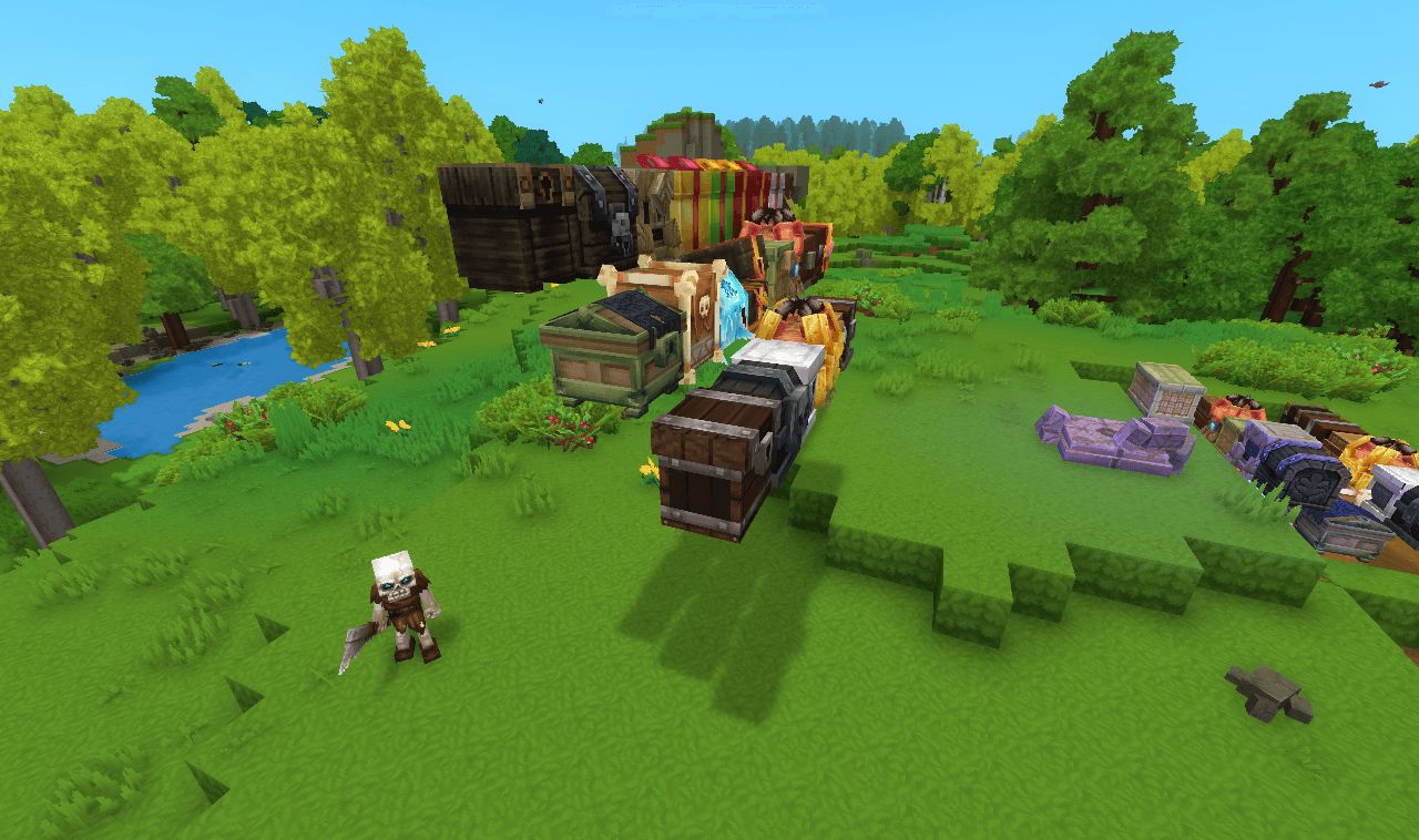 Builders can create floating platforms, airships, tree builds, caves, and decorative storage without worrying about chest physics