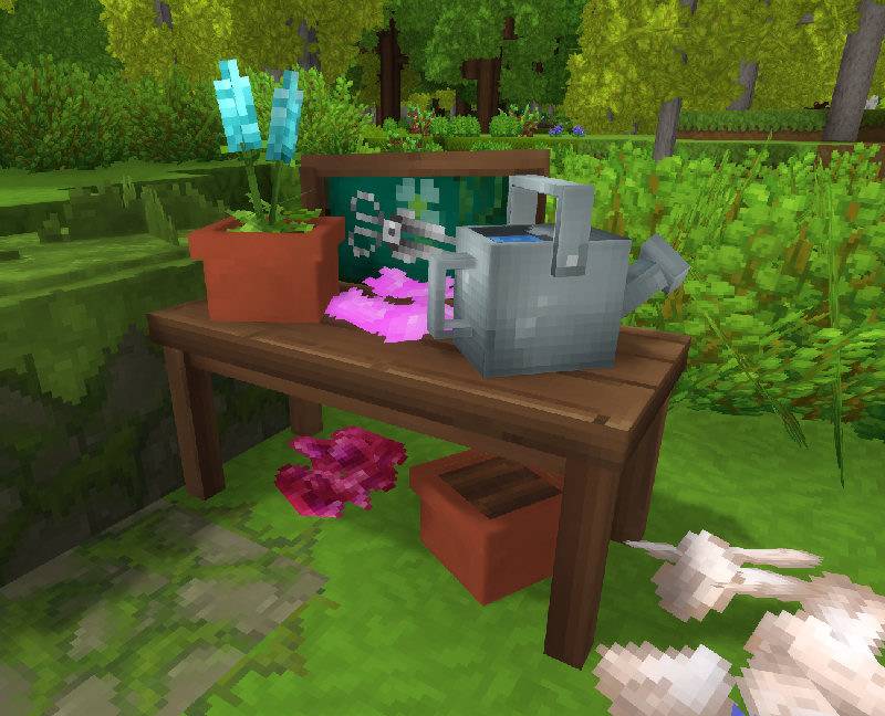 Флорист - это мод, который позволяет вам взять лепестки, которые вы собрали от случайного убийства всех красивых цветов, и превратить их обратно в цветы. Создайте флористическую скамью на обычном рабочем столе, установите ее и сделайте свое пространство красивым.