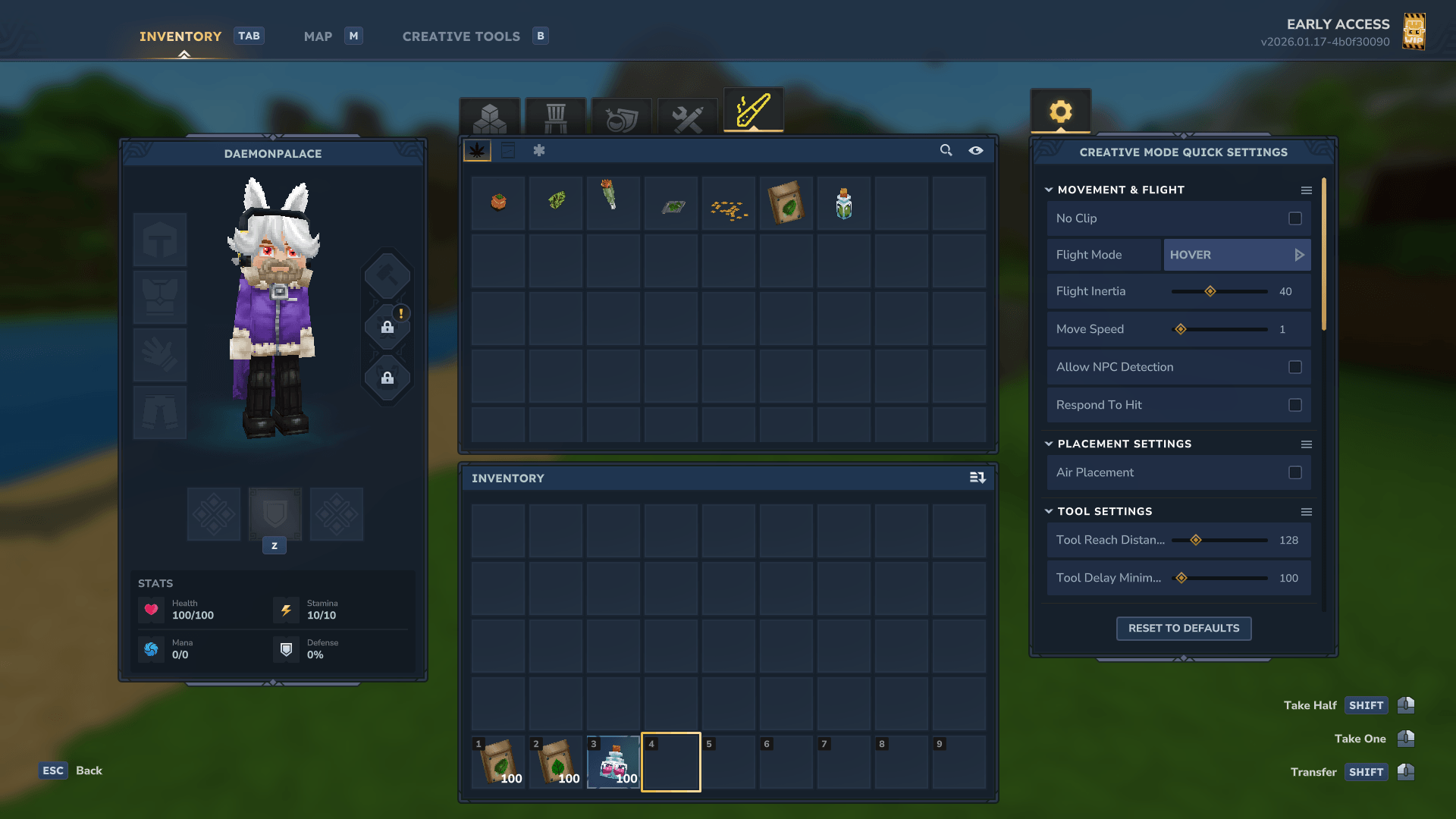 - New Creative gamemode menus