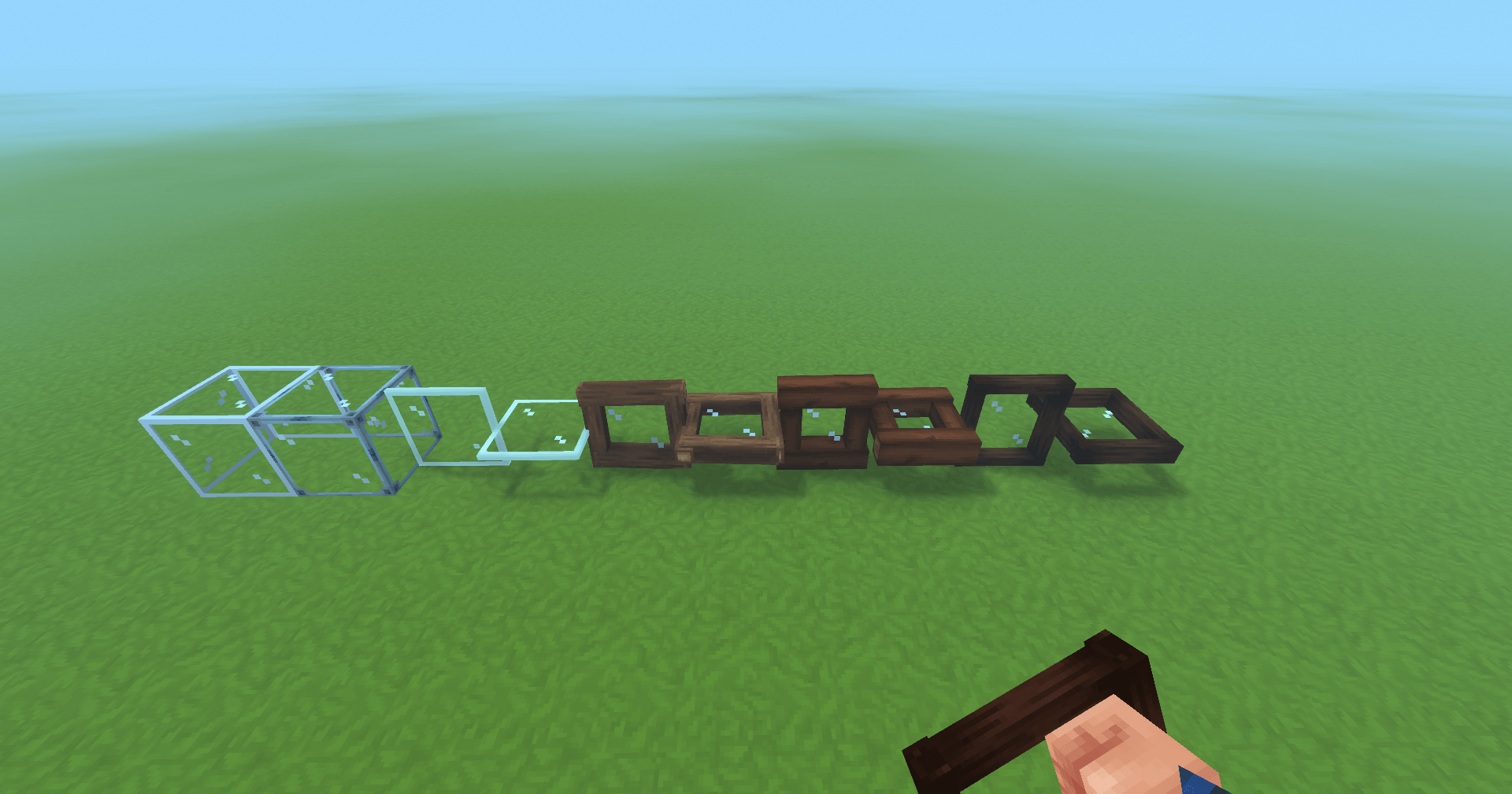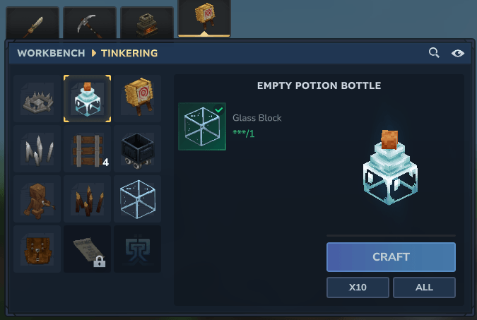 Вместо этого вы будете создавать бутылки с зельями в Рабочий стол использовать Стеклянные блоки.