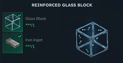 Этот тип стеклянного блока требует много ударов, чтобы сломаться, используйте пикакс Чтобы быстрее их сломать. Для справки с использованием кобальтового пикакса потребуется всего два попадания.