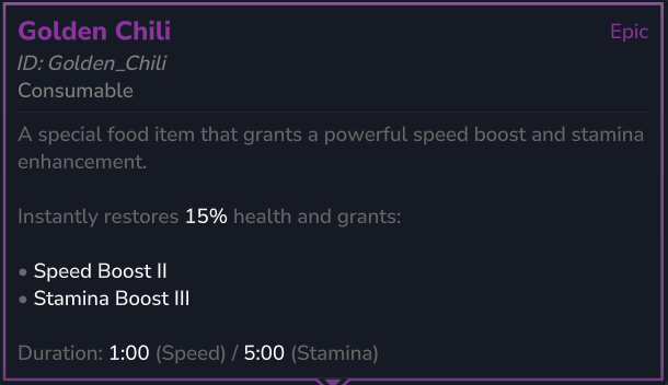 A special food item that grants temporary buffs to Stamina and Player Speed.