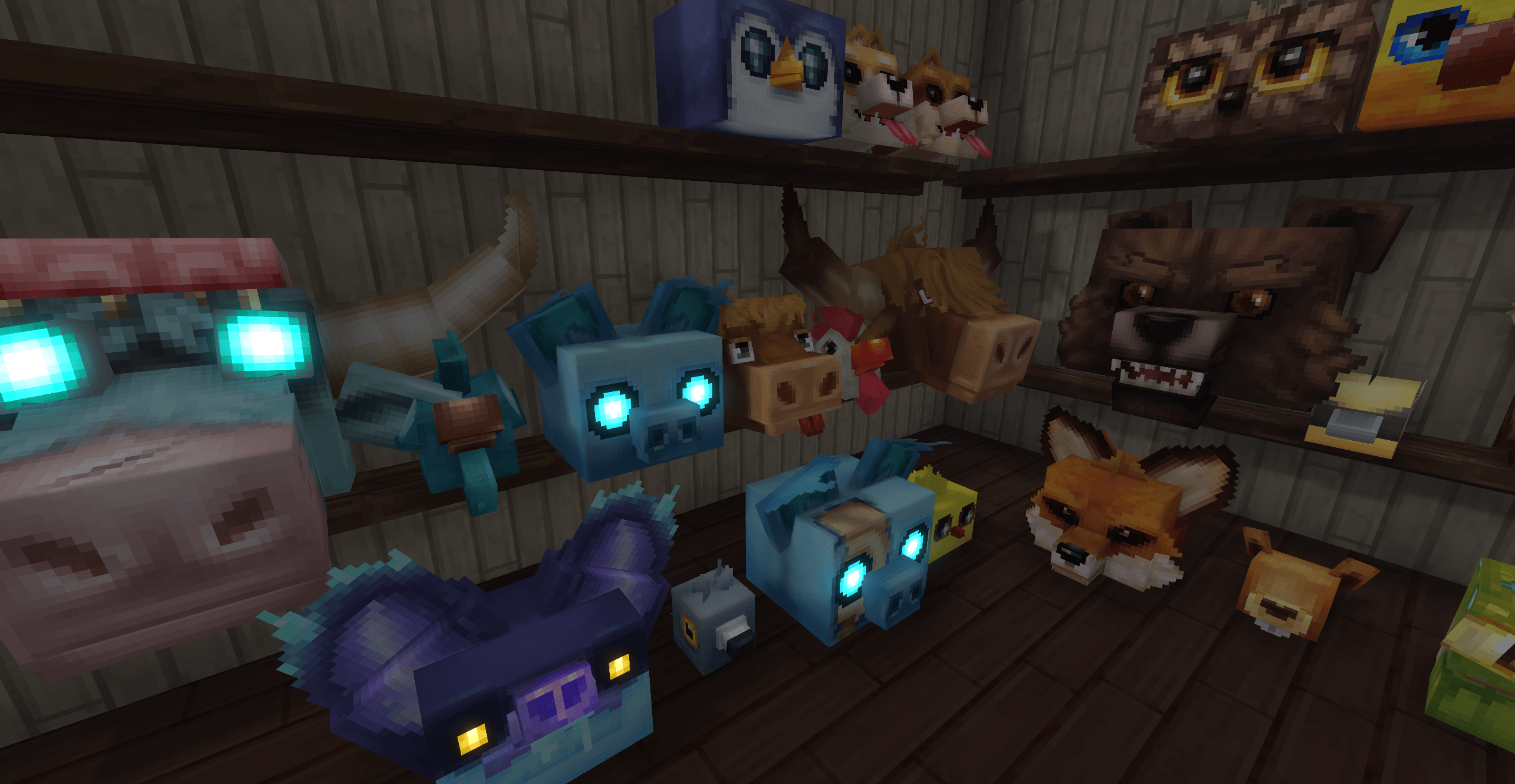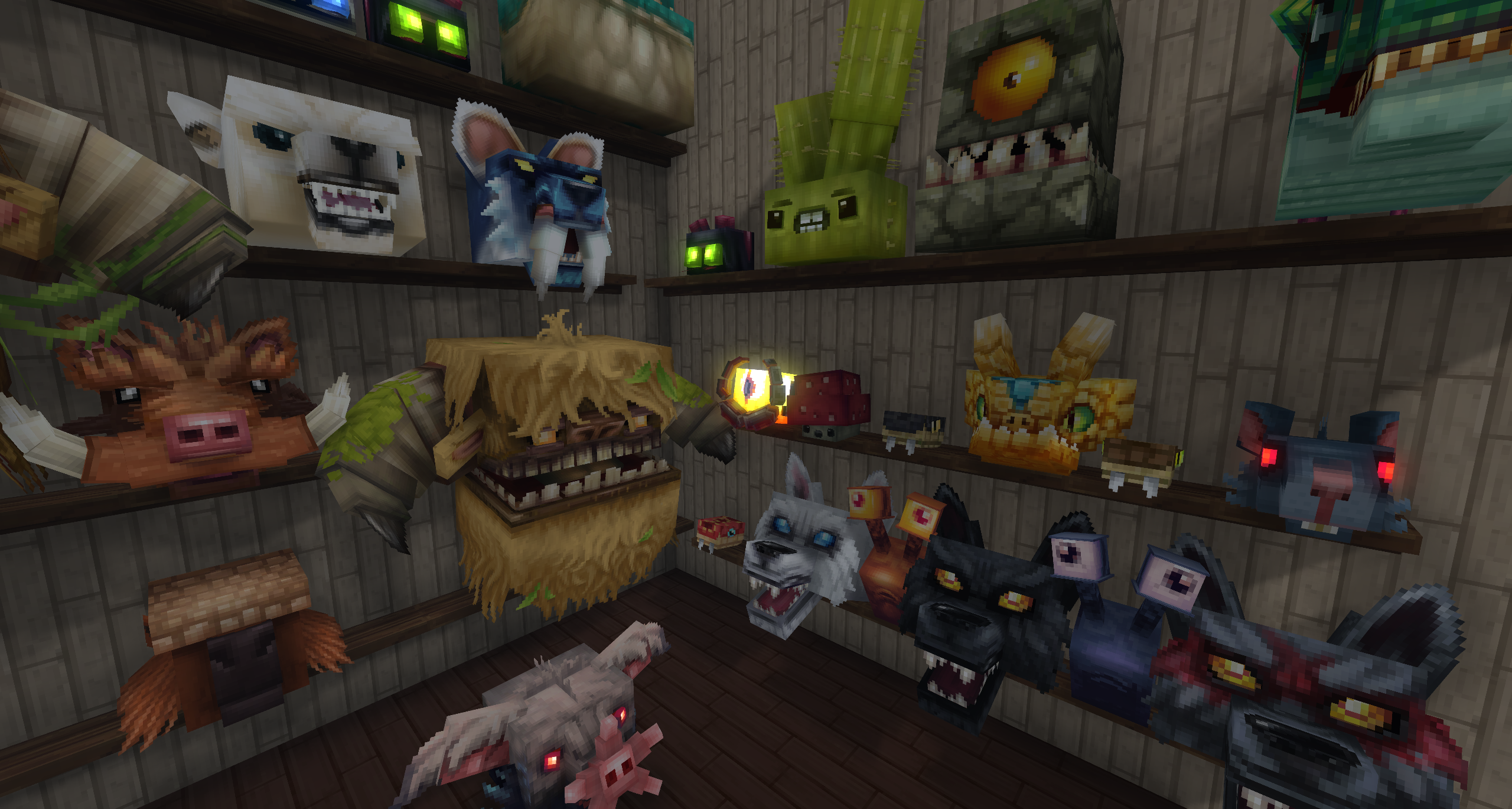 Следующие головки животных могут быть изготовлены на мебельном столе с этим модом. Все плюшевые изделия требуют растительного волокна и одежды, скрытия, костей, кристаллов и т. Д. В зависимости от животного.