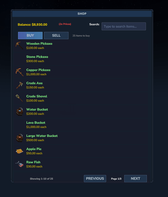 self - Uses the built-in economy system. Player balances are stored in plugins/HTSkyBlock/playerdata.json