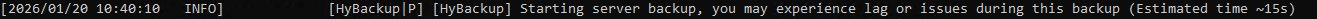 mods/HyBackup/backups/with one subfolder per day (MM-dd-yyyy). - Skips locked files so backups complete reliably.