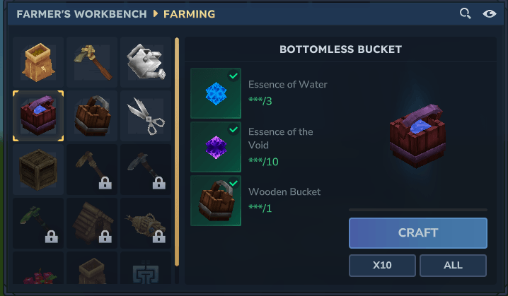 Добавляет бездонное ведро, изготовленное из сельскохозяйственной верфи.