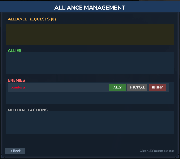 | Alliance System | ✅ | Request/accept with mutual requirements |