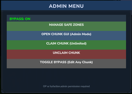 | Admin Tools | ✅ | Unlimited claims, bypass, safe zones |