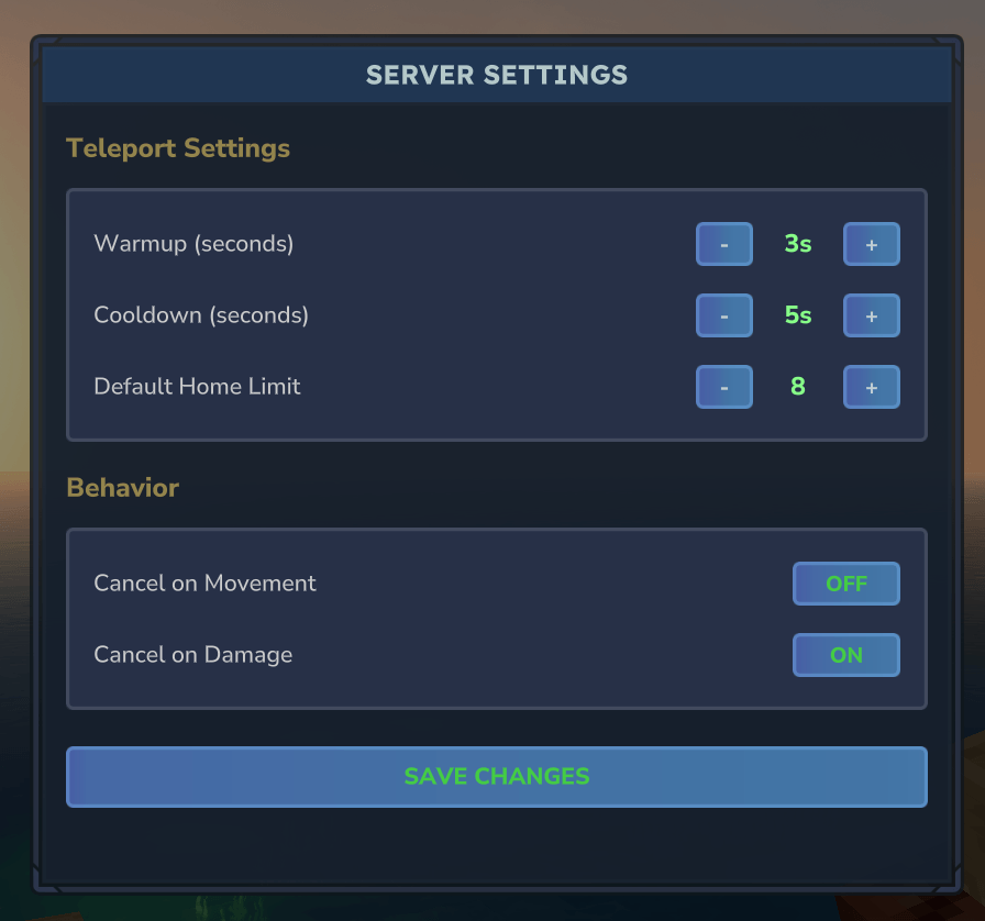 • One-click teleportation with warmup countdown