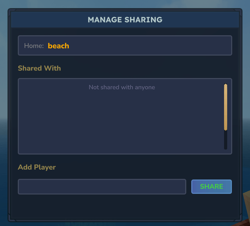 • Share homes with other players directly from the GUI