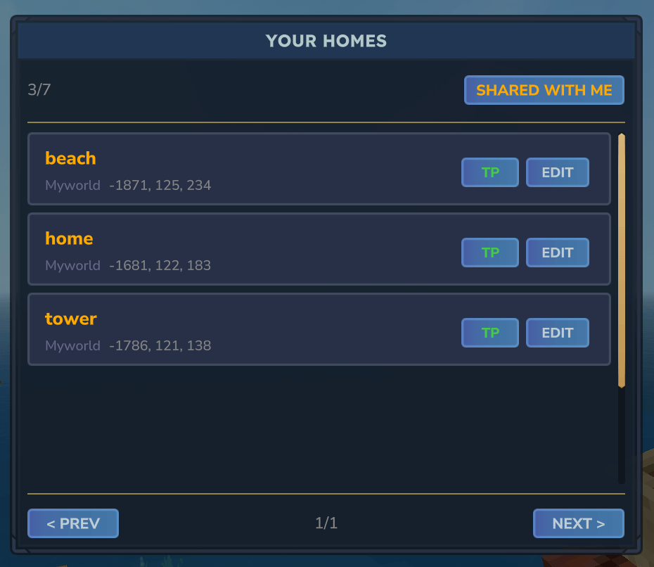 Run /homes → manage all your homes visually. Share locations with friends. No commands to memorize.