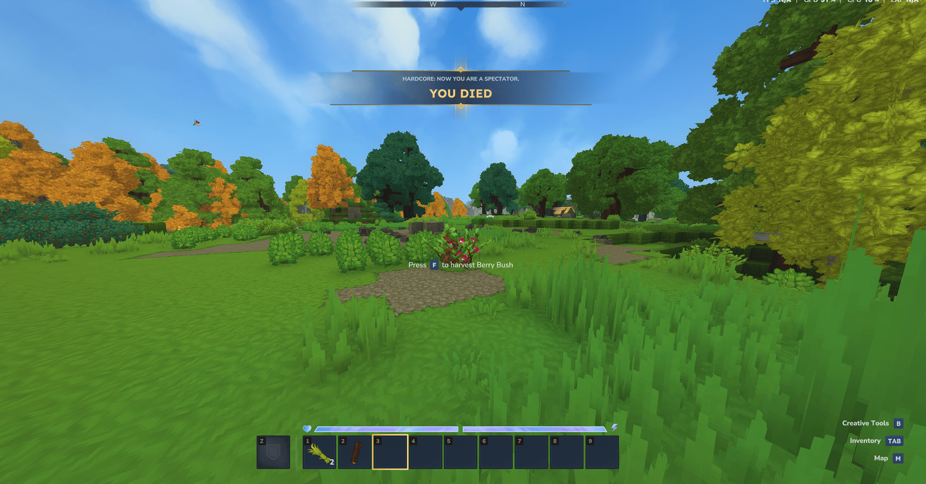 This plugin brings a Hardcore-style mode to Hytale: when you die, you’re switched into a spectator-like experience. A big “YOU DIED” message appears, you’re put into Creative, and you can no longer interact with the world (no breaking, placing, damaging, or using blocks). An admin can restore you by switching your game mode back to Adventure, letting you continue playing normally until you die again.