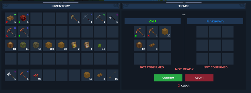 Server-side Trade plugin that allows players to securely trade items and currency directly with each other. It provides a simple and safe trading interface, preventing scams and ensuring fair exchanges between players.