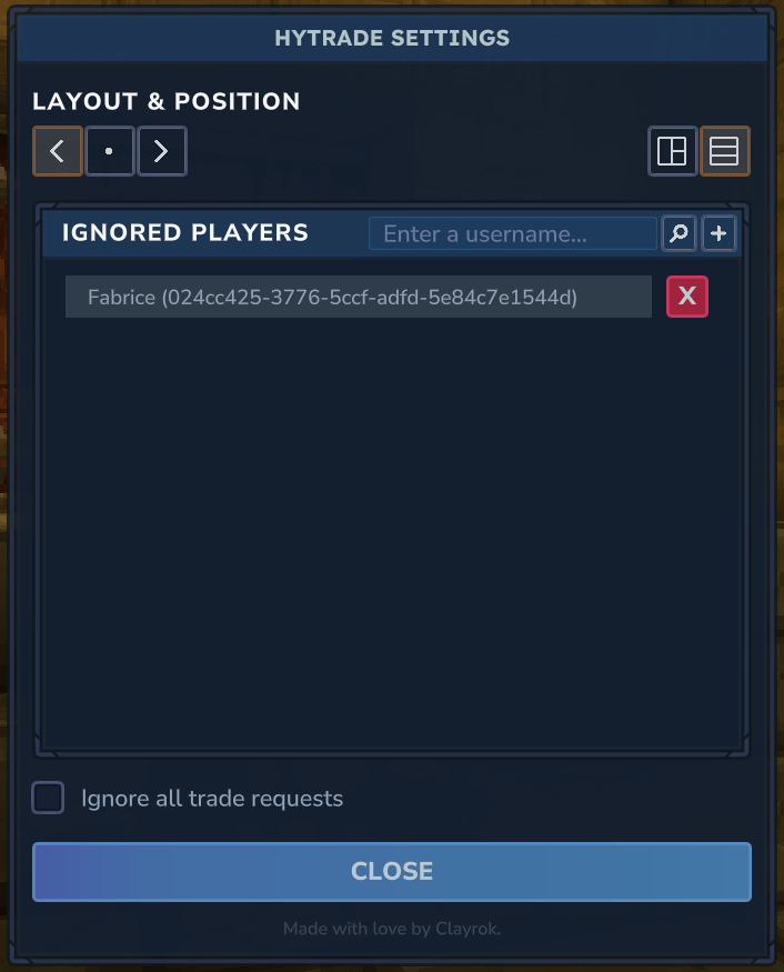 - Settings Panel: Customize your experience in-game. Toggle layouts, adjust positions, and manage your ignore list.