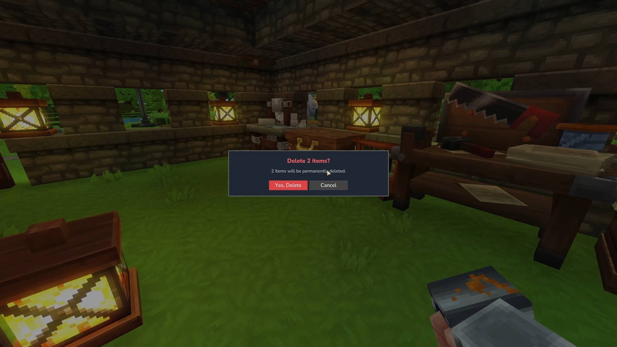 - Trash bin icon display in confirmation dialog not yet supported by Hytale UI API