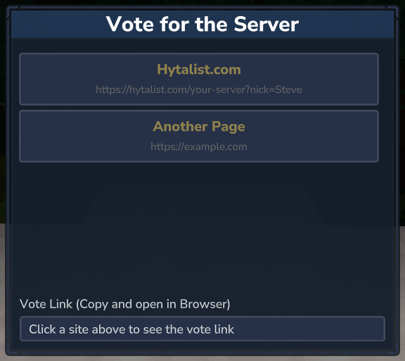 Note: The target server must have HyVote (or another Votifier V2 compatible plugin) running. Make sure the token matches the target server's config.