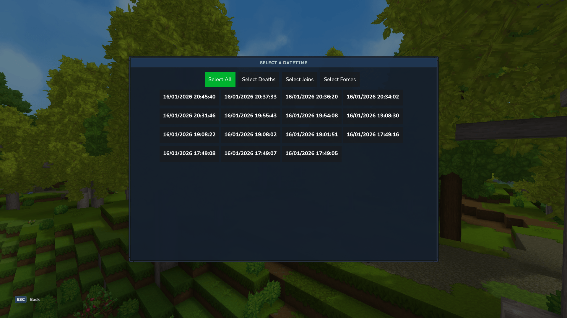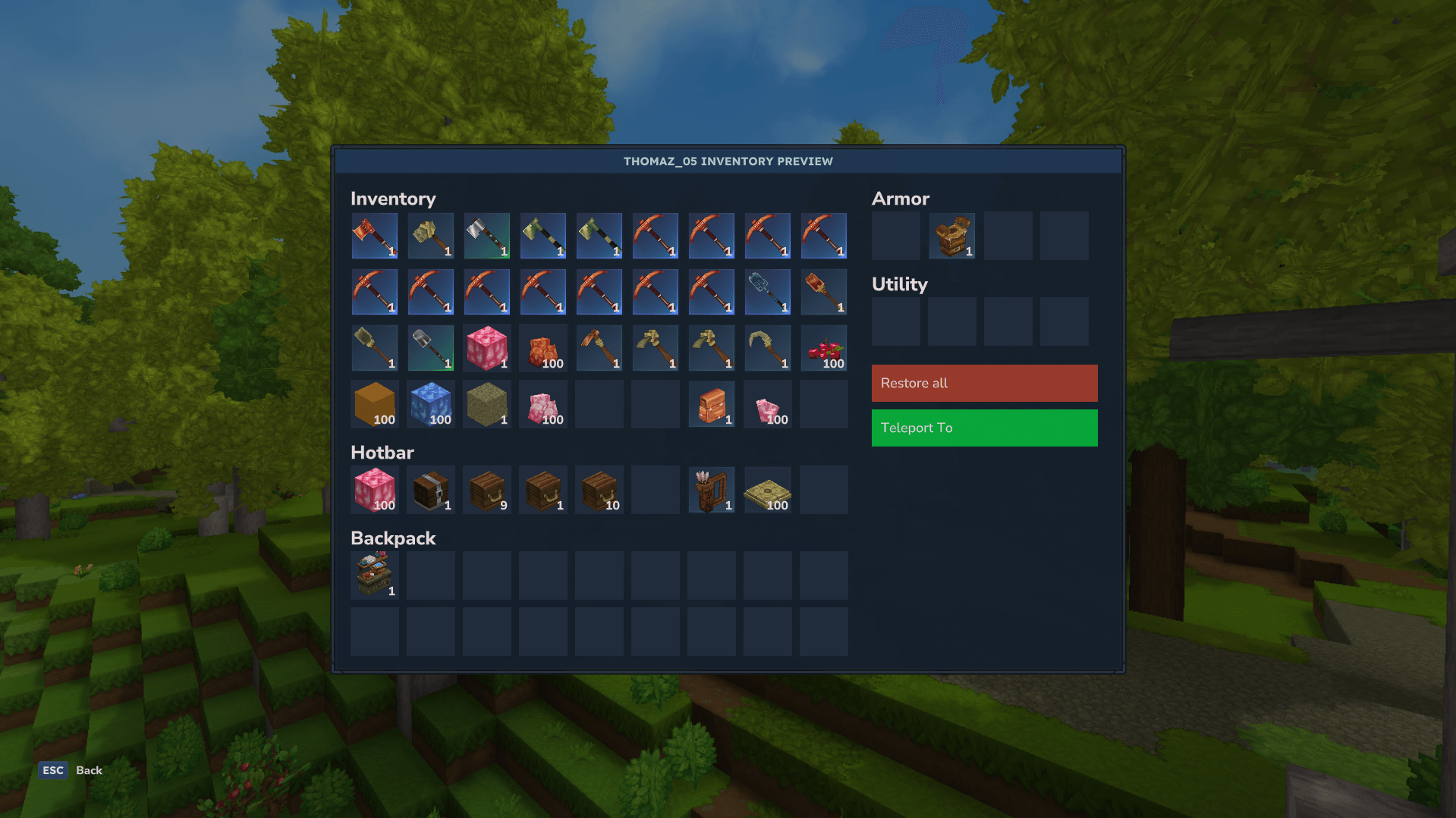 - Teleport To: Teleports the player to the location where the backup was created