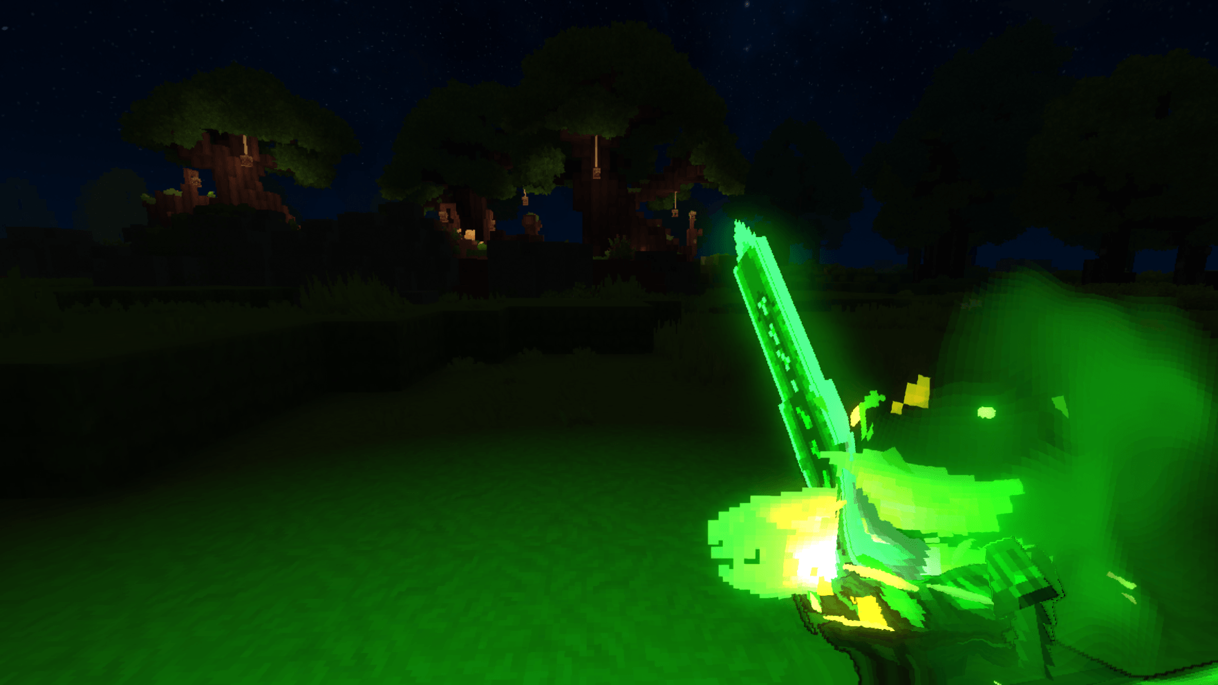 Custom VFX: Includes distinct green fire particle effects and a trail that leave a ghostly signature with every swing.