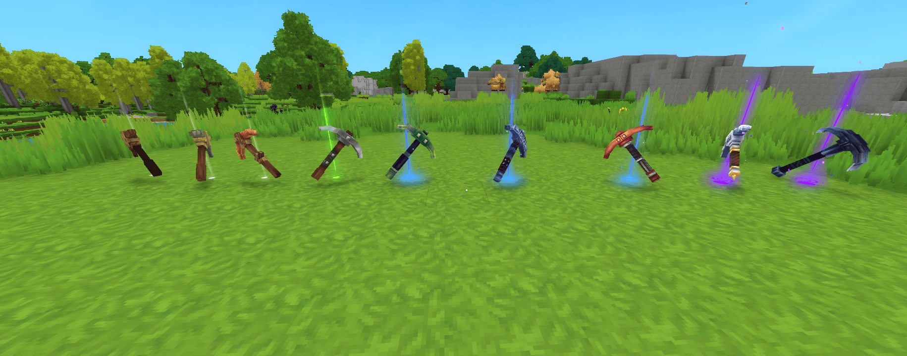 • Shovels: Soil and Sand only. (currently only go up to Cobalt tier, later will have more)
