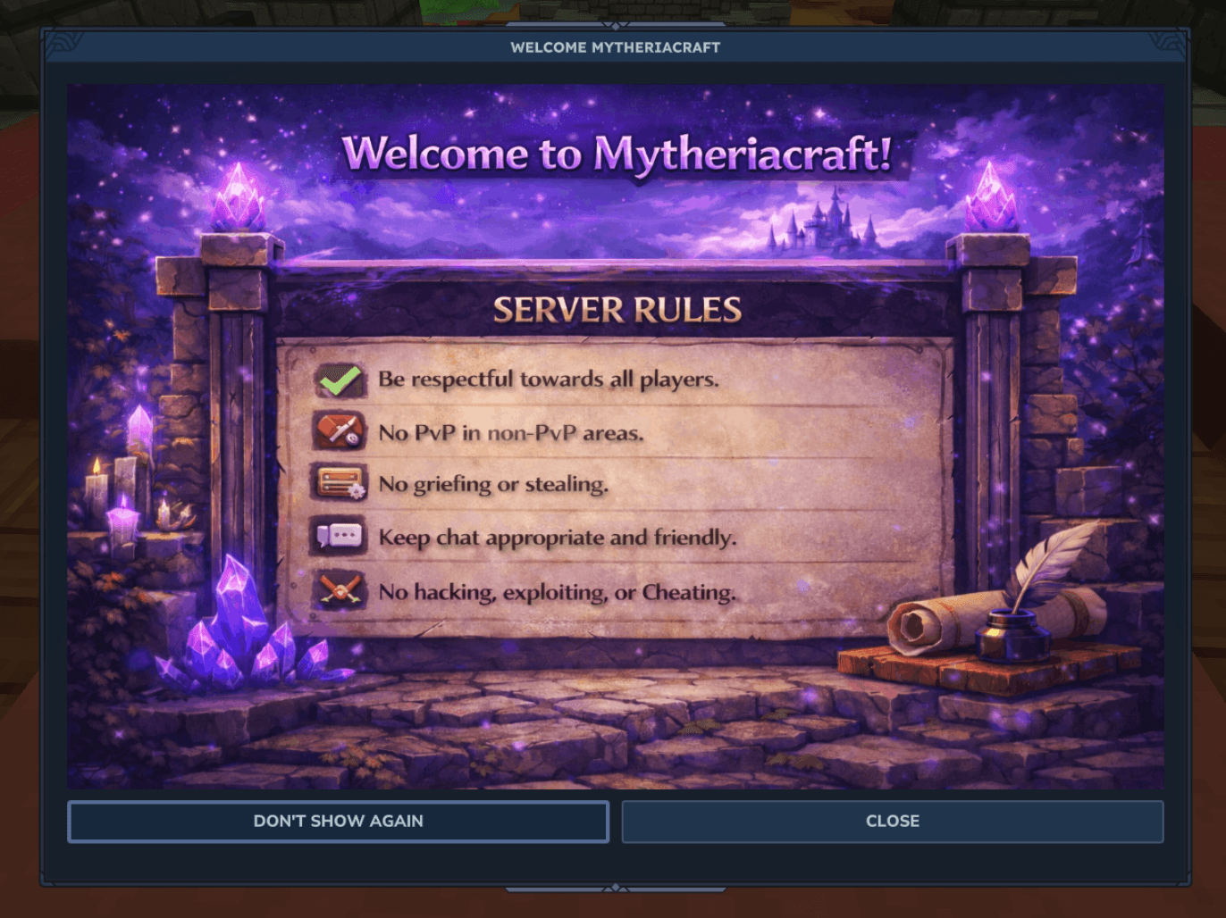 Продвинутый, основанный на изображениях, удобный для сервера приветственный всплывающий окно для серверов Hytale.