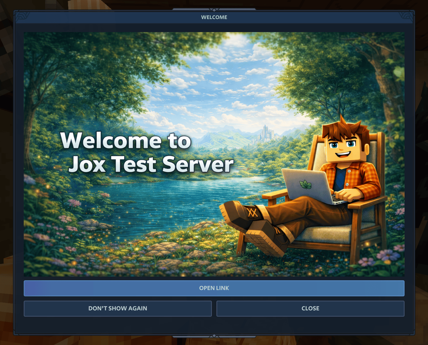 An advanced, image-based, server-friendly welcome popup for Hytale servers.