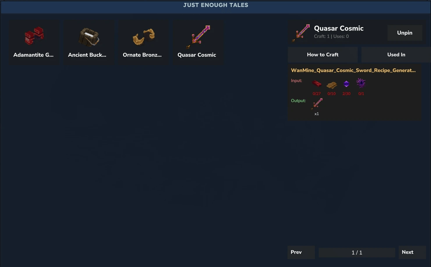 @modnameдля фильтрации элементов по моду (например,@commonПоказаны только ванильные изделия - Фильтры исключения: Использовать