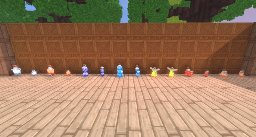 Этот пакет в настоящее время добавляет 7 новых зелийКаждый из них доступен в обоих меньше и Больше варианты: