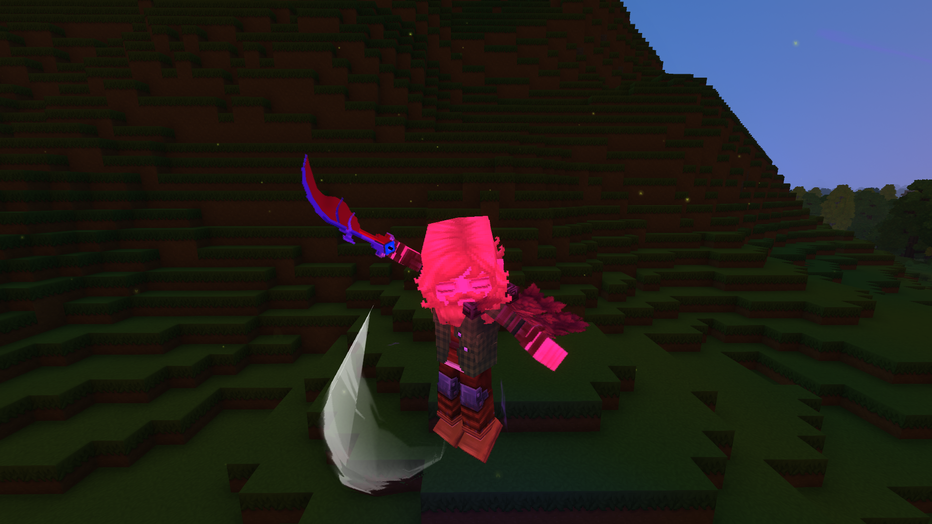 - Swing animations and effects are not perfectly lined up. They remain unaltered from the Adamantite Sword's swings.
