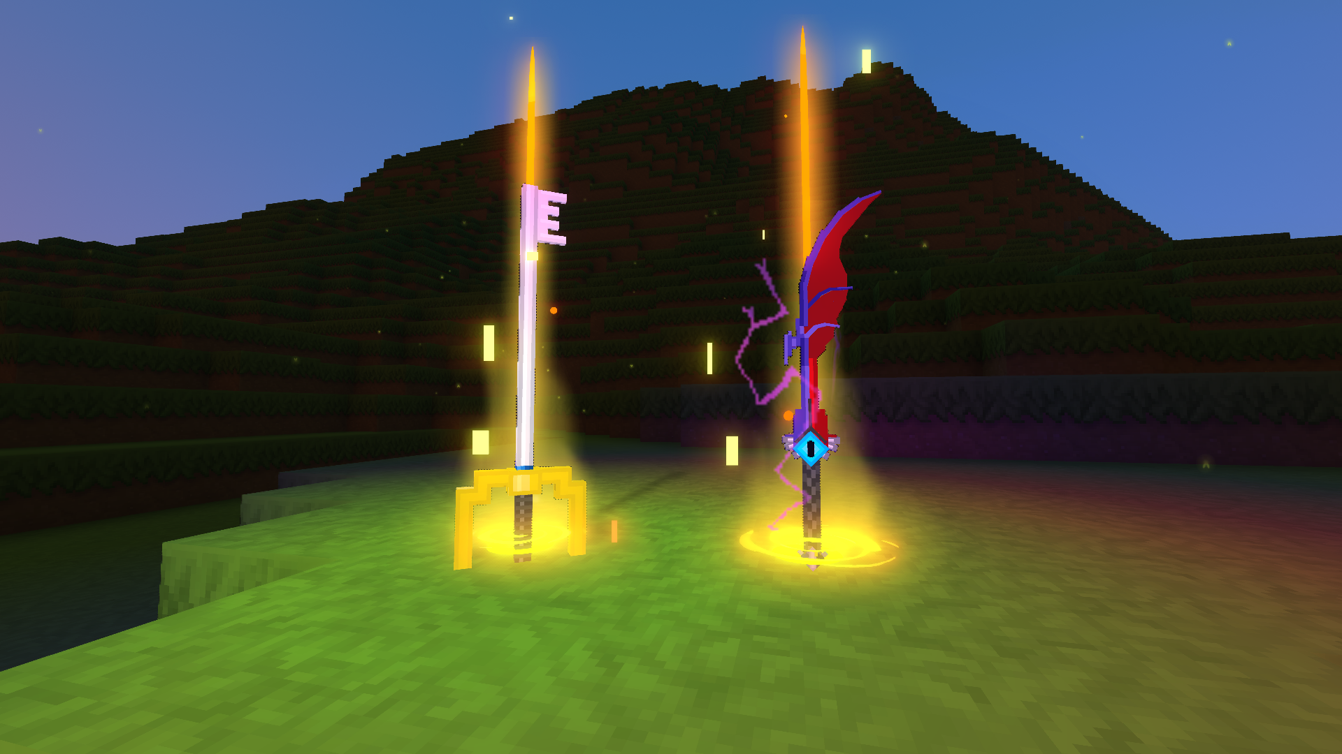 Adds two powerful keysword weapons for exploration or creative gameplay.