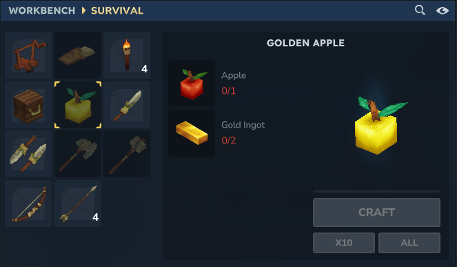 Add the golden apple craft in your world.