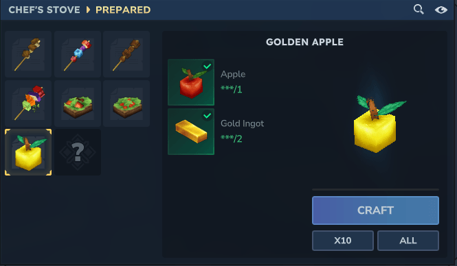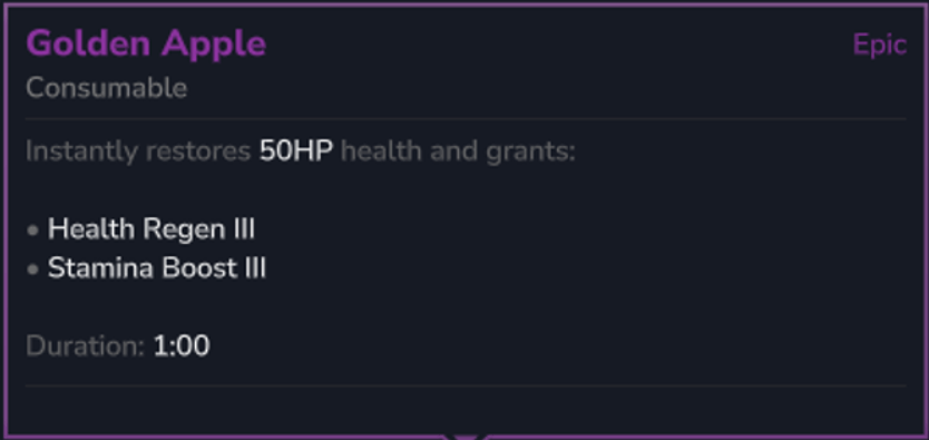 This golden apple is designed with PvP in mind, relatively easy to craft in early game.