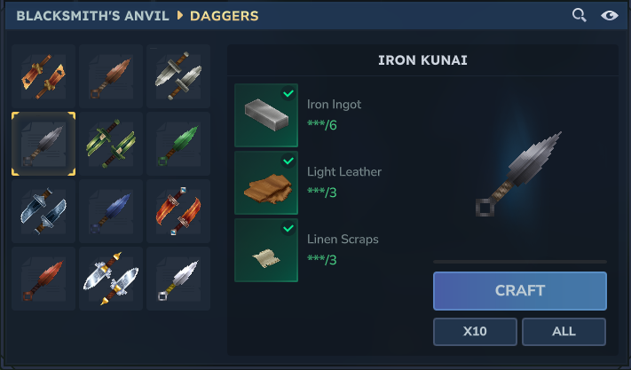 Makes the Kunai craftable and usable. Also adds multiple tiers of Kunai.