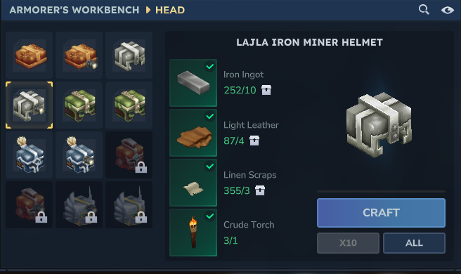 🛠️ Simple crafting – uses the standard helmet armor parts ➕ 1 extra ingot and 1 torch