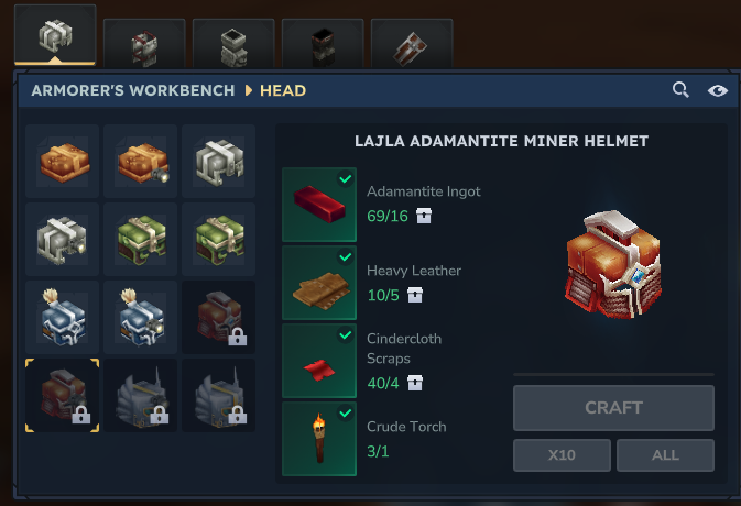 ️️ Простое ремесло использует Стандартные бронированные шлемы 1 дополнительный слиток и 1 факел