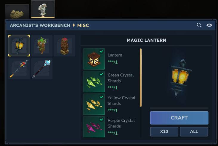 - Crafting recipe for the pet lantern