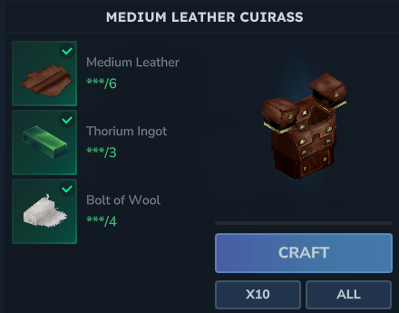 slightly worse than iron, crafted with medium leather, (a tiny bit) thorium and wool