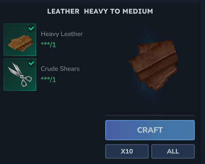 - Heavy Leather and Scissors -> 2 Medium Leathers.