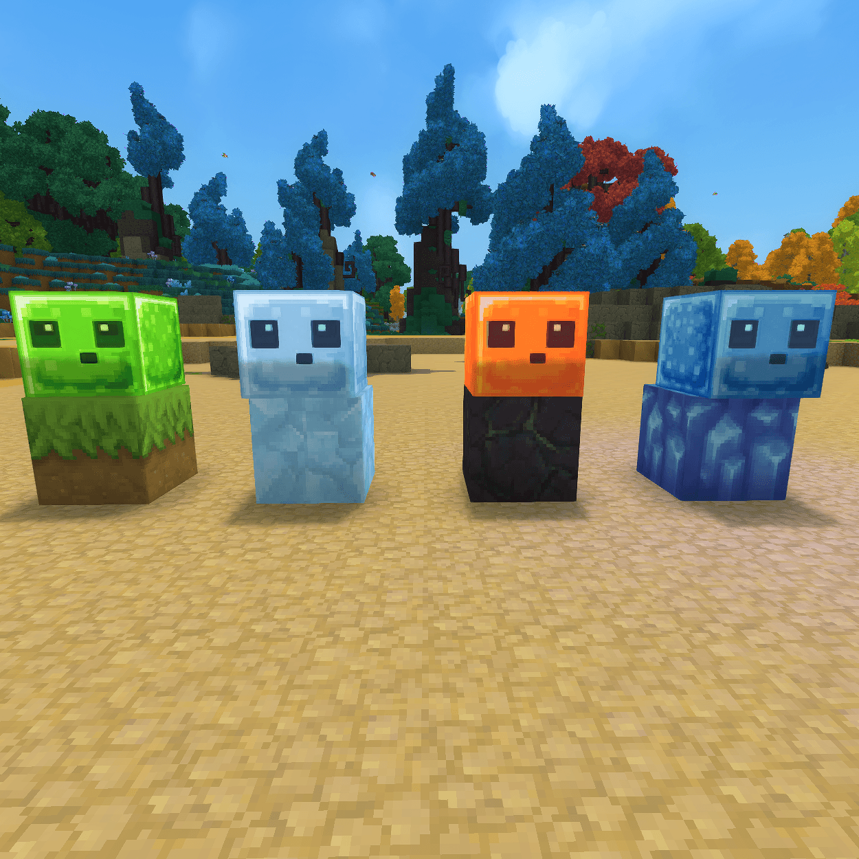 Green, Red, Ice and Water, King, Ghost and Bomb! They all have their own unique drops and spawn locations! Drops useful mats for each zone as well.