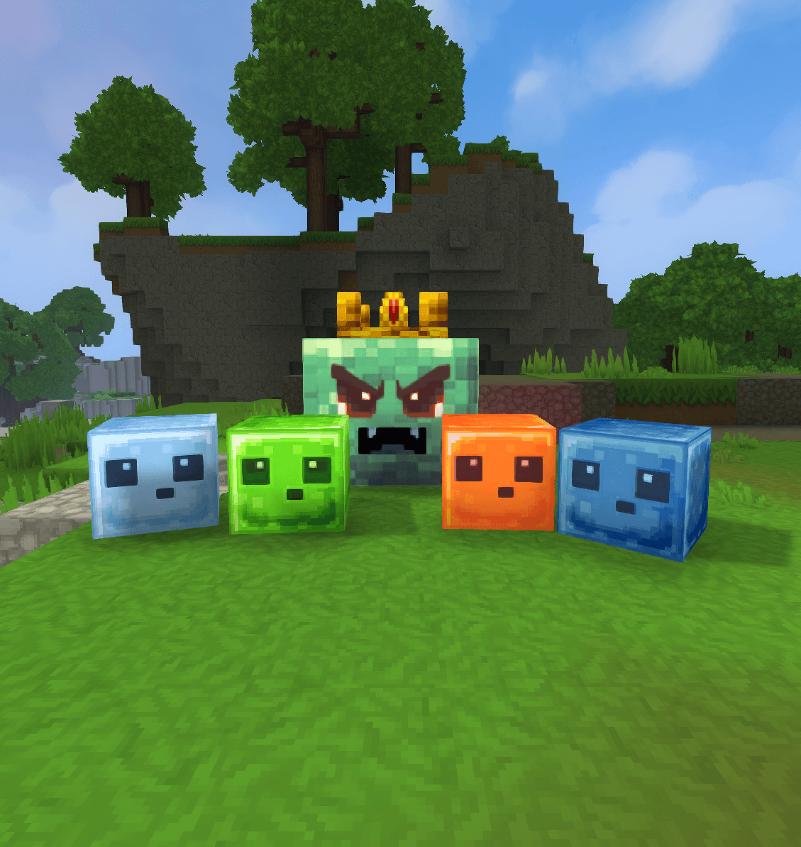 - Король Теперь появляется слизь! Редко нерестится в биоме джунглей и может уронить полезные предметы! Будь осторожен, он порождает миньонов!