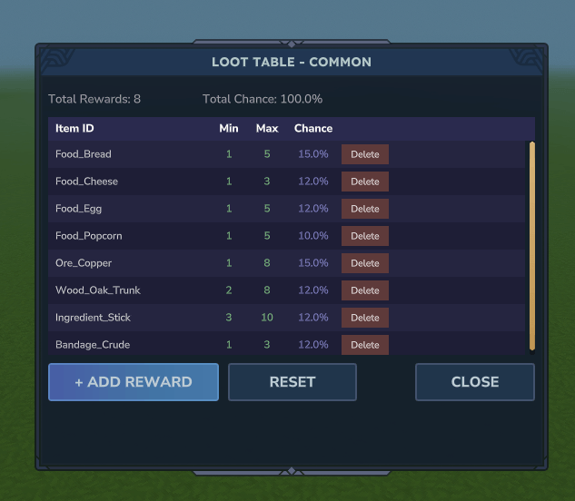 - Красивый внутриигровой интерфейс для настройки таблиц лута
