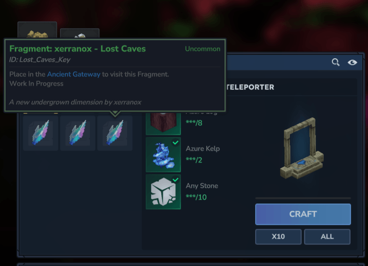 - New Portal Fragment: "xerranox - Lost Caves" (Craftable at 100 memories unlocked with Arcanist's Workbench)