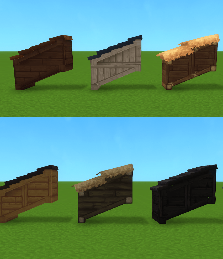 All variants of roof tile have a coresponding Soffit that means planks, cobble and bricks.