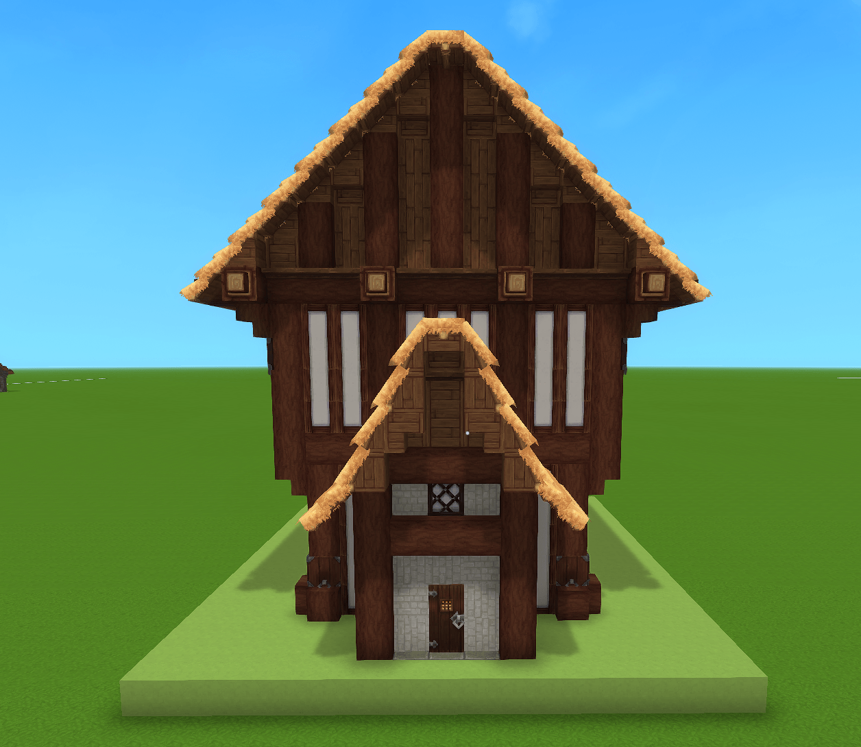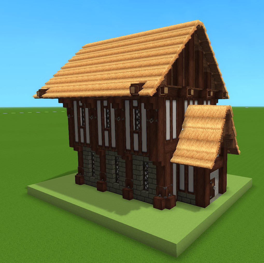 This prefab features a fully custom-made medieval house, ready to use in any project! The main building measures 17×21x19 blocks and is crafted from sturdy oak blocks, giving it an authentic medieval look. It is perfect for adding character and functionality to your scenes. Ideal for games, Hytale builds, or any creative project needing a charming tavern centerpiece.