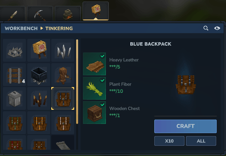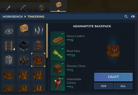 ◽ 11 new backpacks with 63 slots, made from ore chestplates.