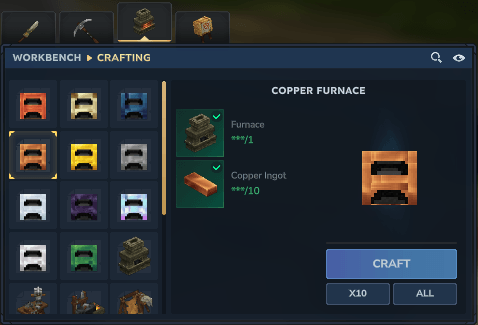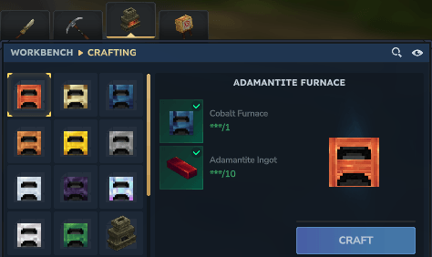 ◽ Easy recipes, all recipes are made with 1 furnace from the previous tier + 10 ingots from the new furnace. - Upgraded furnaces, all of them, when upgraded, provide 10% more speed and guarantee 6 input slots and 6 output slots.