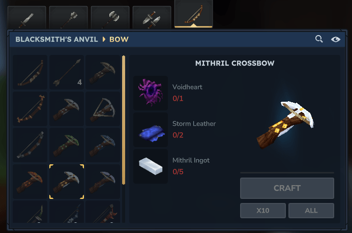 (The Mithril and Onyxium crossbows have also been added, although these cannot be crafted in exploration mode)