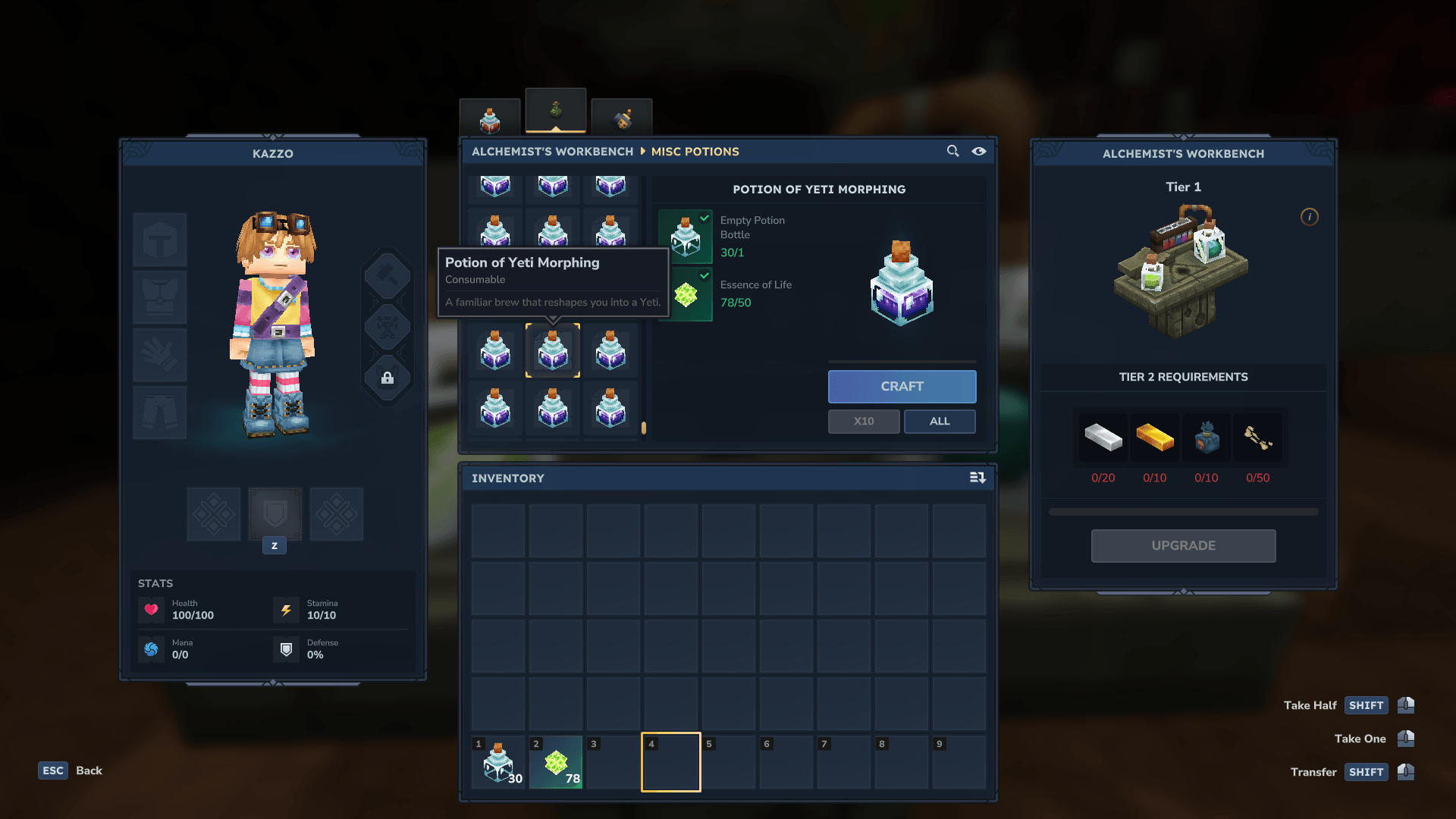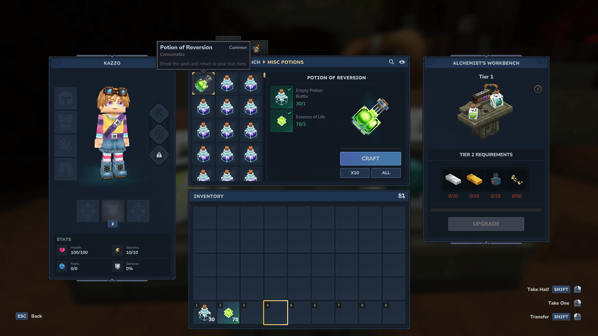 Transform: Drink a potion to instantly take on a new form. Return: Drink a Reversion Potion to restore your original player model.
