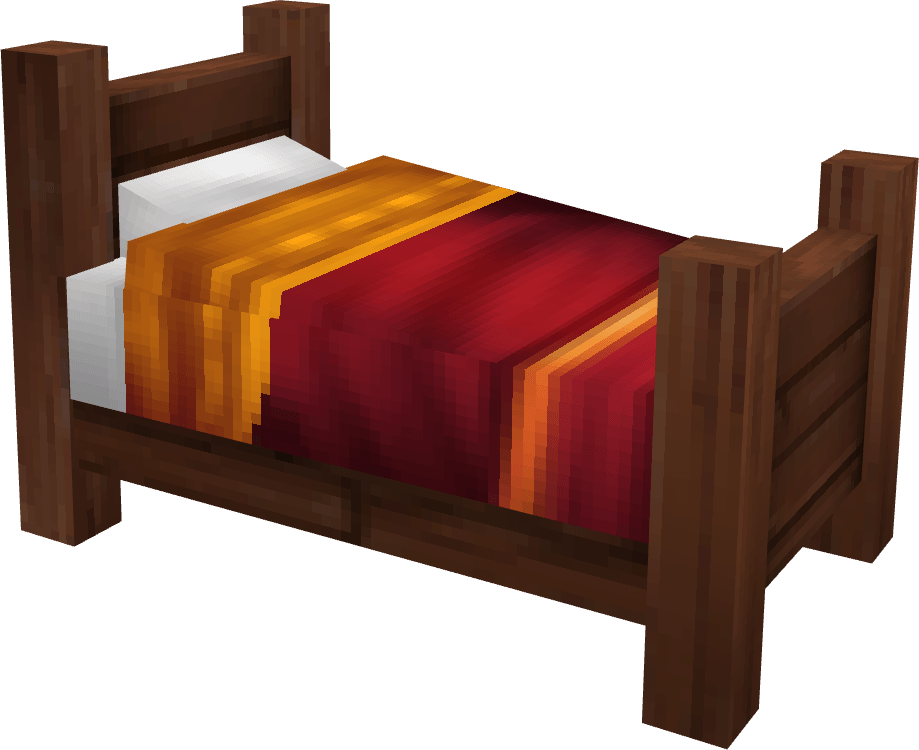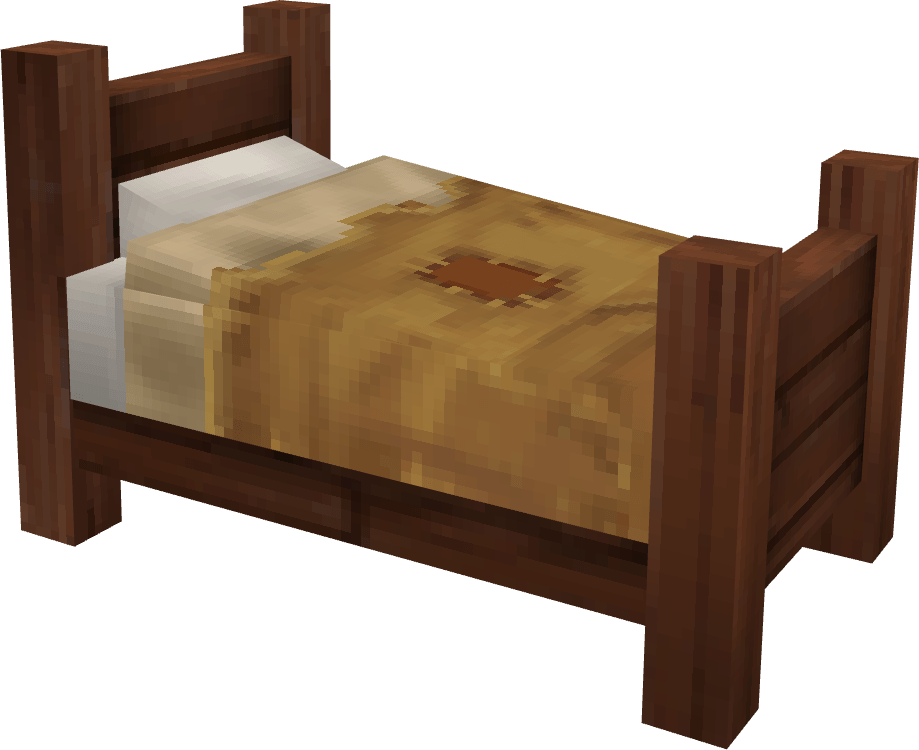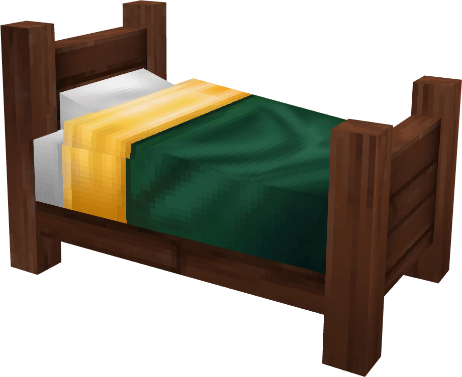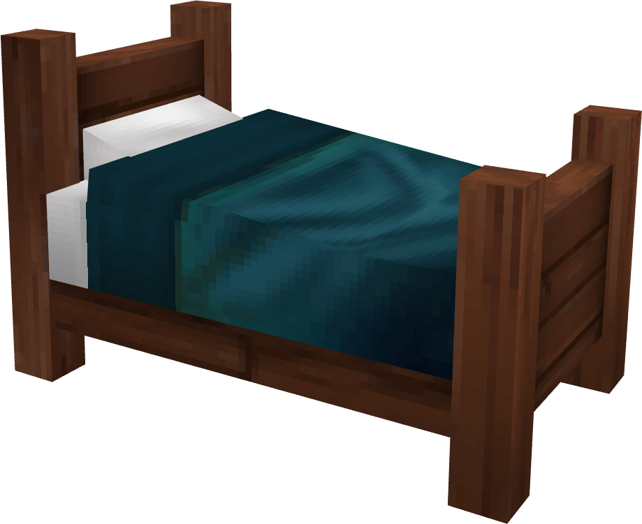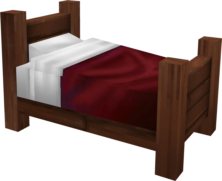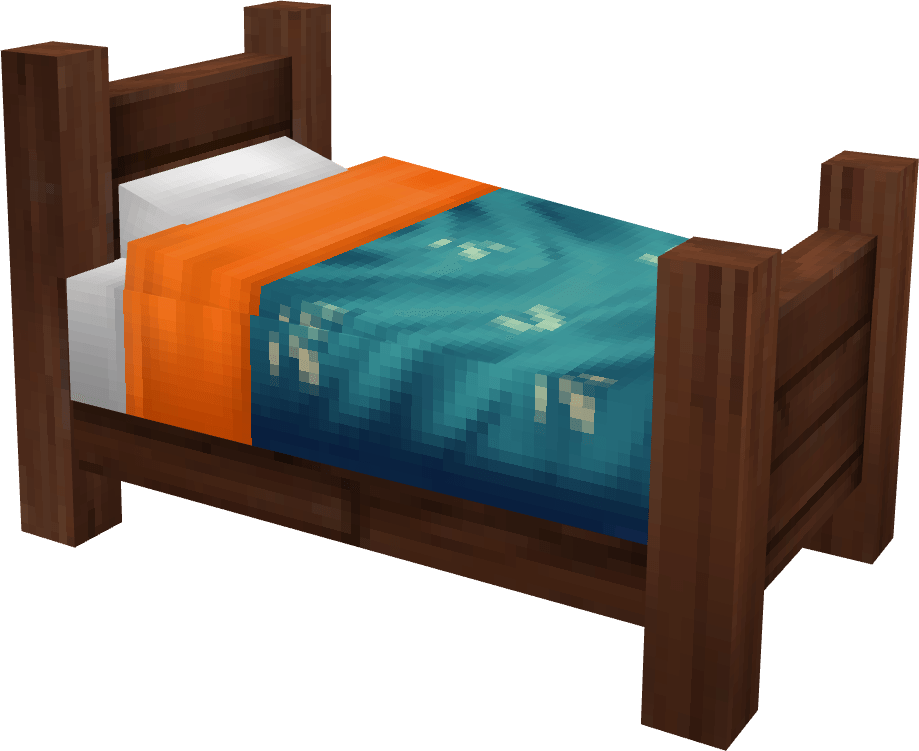 You can find 3 kinds of beds in the Furniture Bench; Patterned (6), Solid (7), and Half (7). Switch between the different variants using the Builder's Hammer!