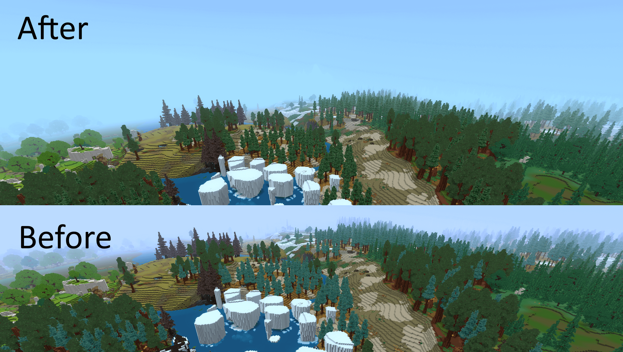 Changes the textures of some trees to create a more natural look